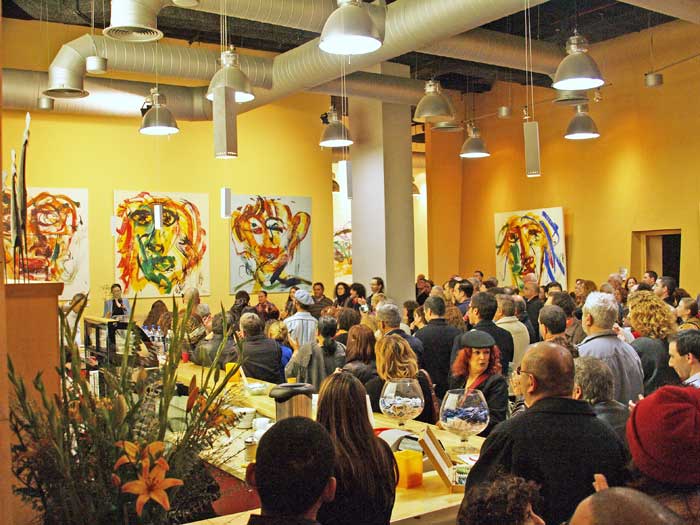 In the opening, prior and after the main event, which included people and a spectacular live demonstration of the 1 Breath Time Art painting, the public went from one room to the other to see the 130 paintings from Emilio's last two years body of works.